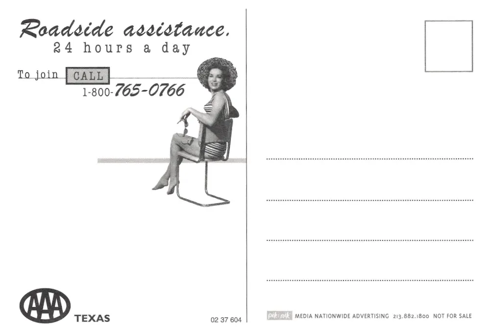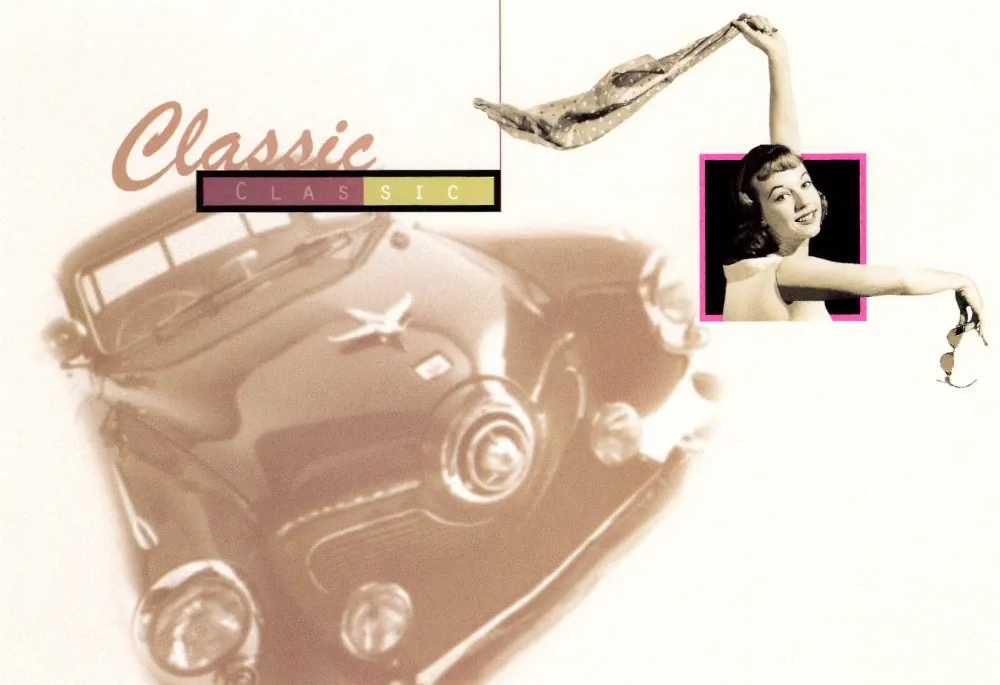 The Classic postcard shimmers with retro optimism — a car in motion, a scarf in the wind, and a promise that style never fades. It’s joy captured mid-century, reminding us that the open road once meant possibility itself.