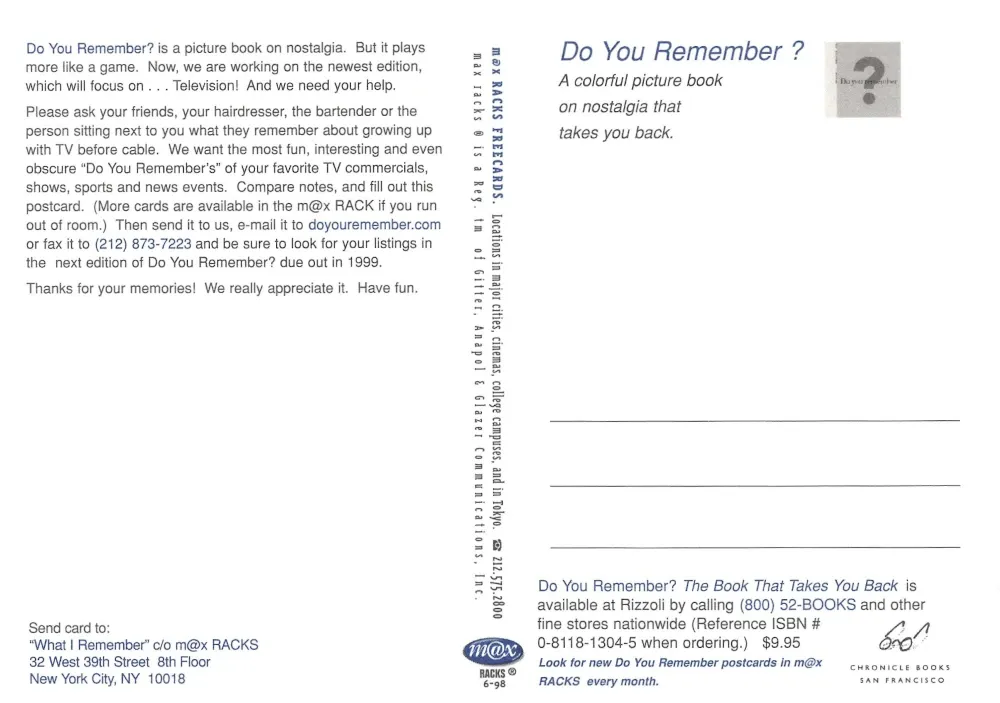 The “What do you remember about Television?” card feels like a time capsule question. It takes you back to static-filled screens, Saturday mornings, and the shared rhythm of a world that watched together. It’s nostalgia distilled to a single, honest pause.