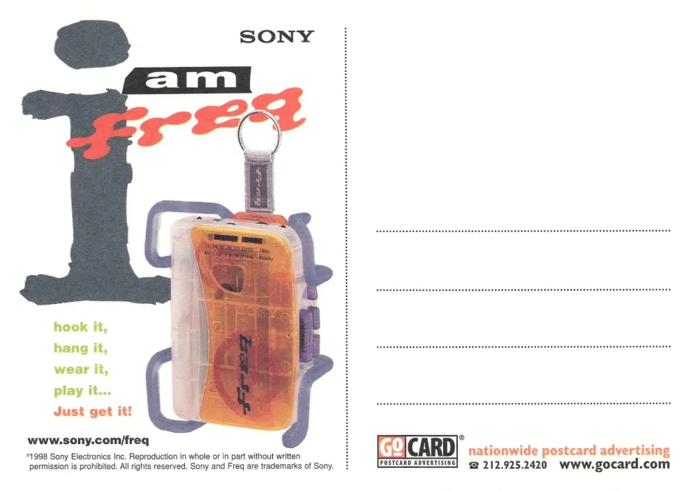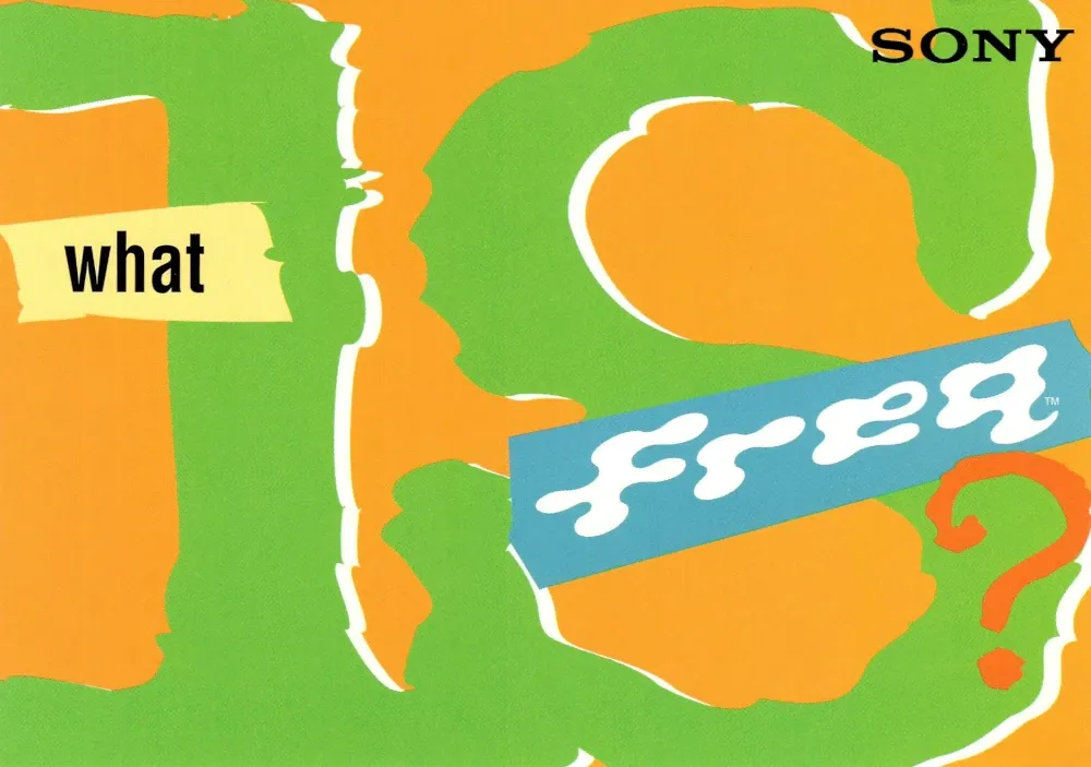 The Sony “What is Freq?” card is pure design-era curiosity, a snapshot of when branding tried to sound like philosophy. The shapes and colors collide like a question without an answer, reminding me of how technology once felt playful, still discovering its own voice.