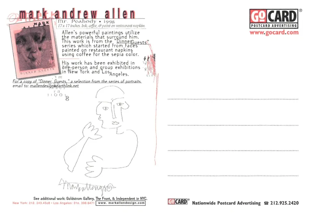 The Mark Andrew Allen card feels like the pause after all that noise. The face, abstract and human, looks both weary and curious. It’s art that asks quietly, What’s beneath all this design?