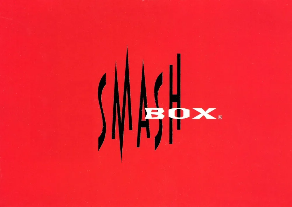 This card presents the Smashbox Cosmetics company's logo with black and white lettering with red background. The logo is their distinctive appearance, consistent with the Smashbox visual identity in the 1990s. Smashbox was created by the great-grandson of Max factor, using humane ingredients that did not use animals for testing, at least until he sold the company to Estée Lauder in 2006.