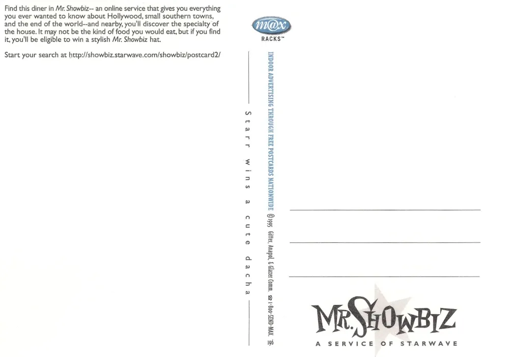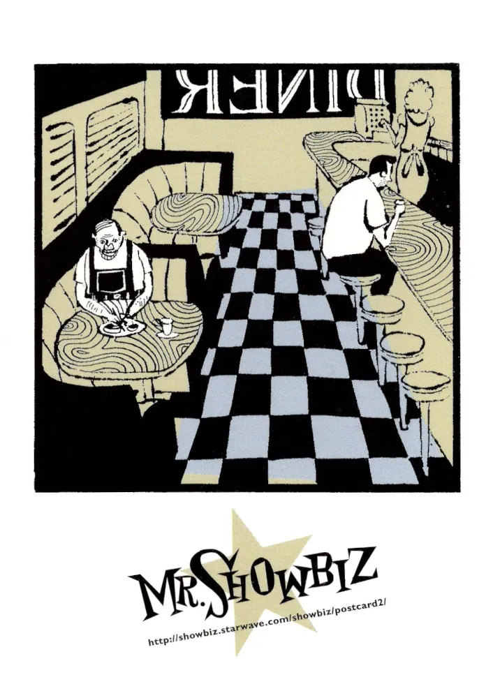Then there are cards like the Ultra Lounge anniversary piece, glowing in gold and mid-century pin-up charm. It captures that swing-revival aesthetic that briefly took over the late 1990s, a world where bands dressed in 1940’s suits and sang into chrome microphones under neon lights. Even if you weren’t playing swing music yourself, that whole scene was in the air. It blended into everything, fashion, advertising, design. The postcards from that period are drenched in it, filled with exaggerated glamour and a nod to the past, but they also felt undeniably modern.